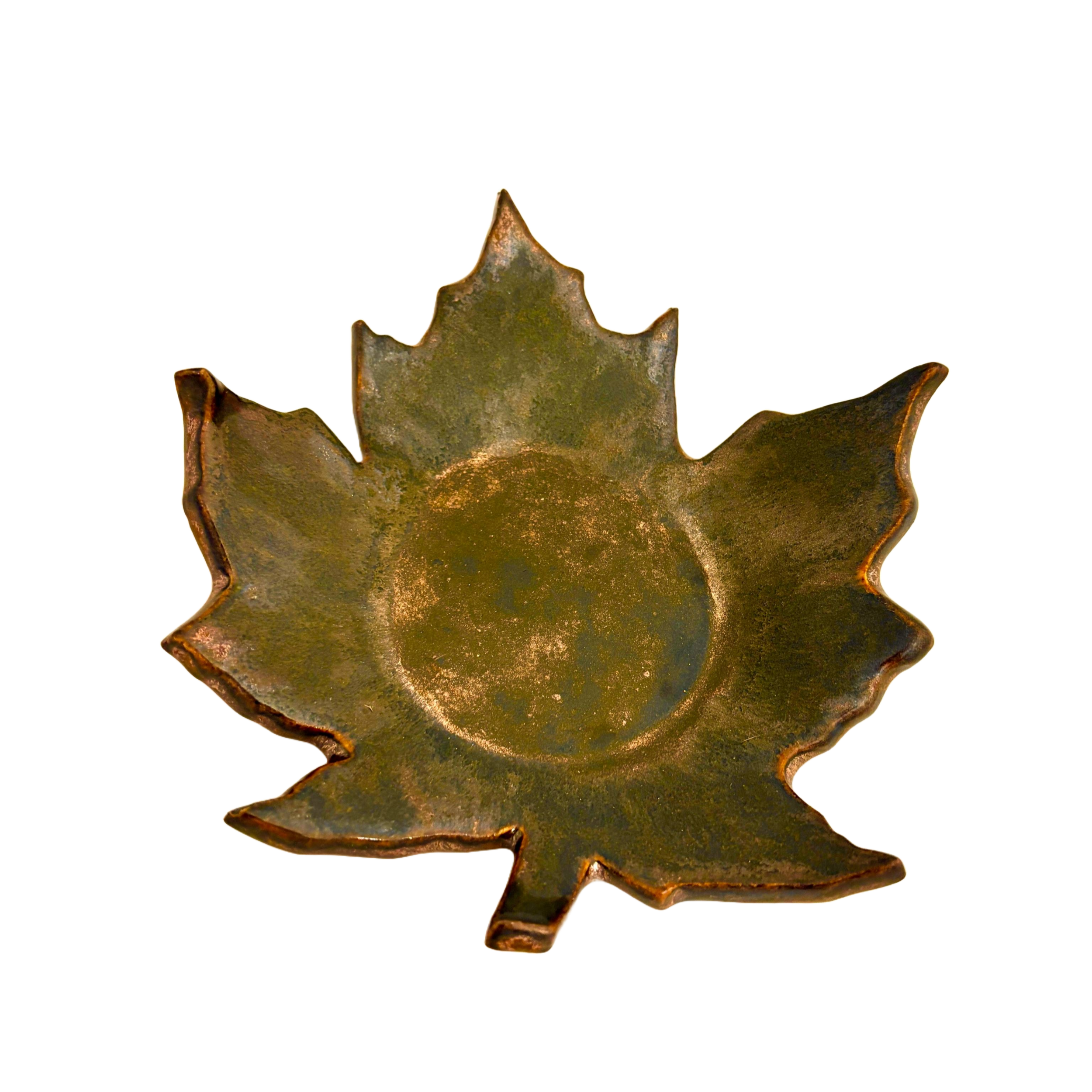 8 inch Maple Leaf side plate / candle holder. Chestnut colour base with glimmers of copper.