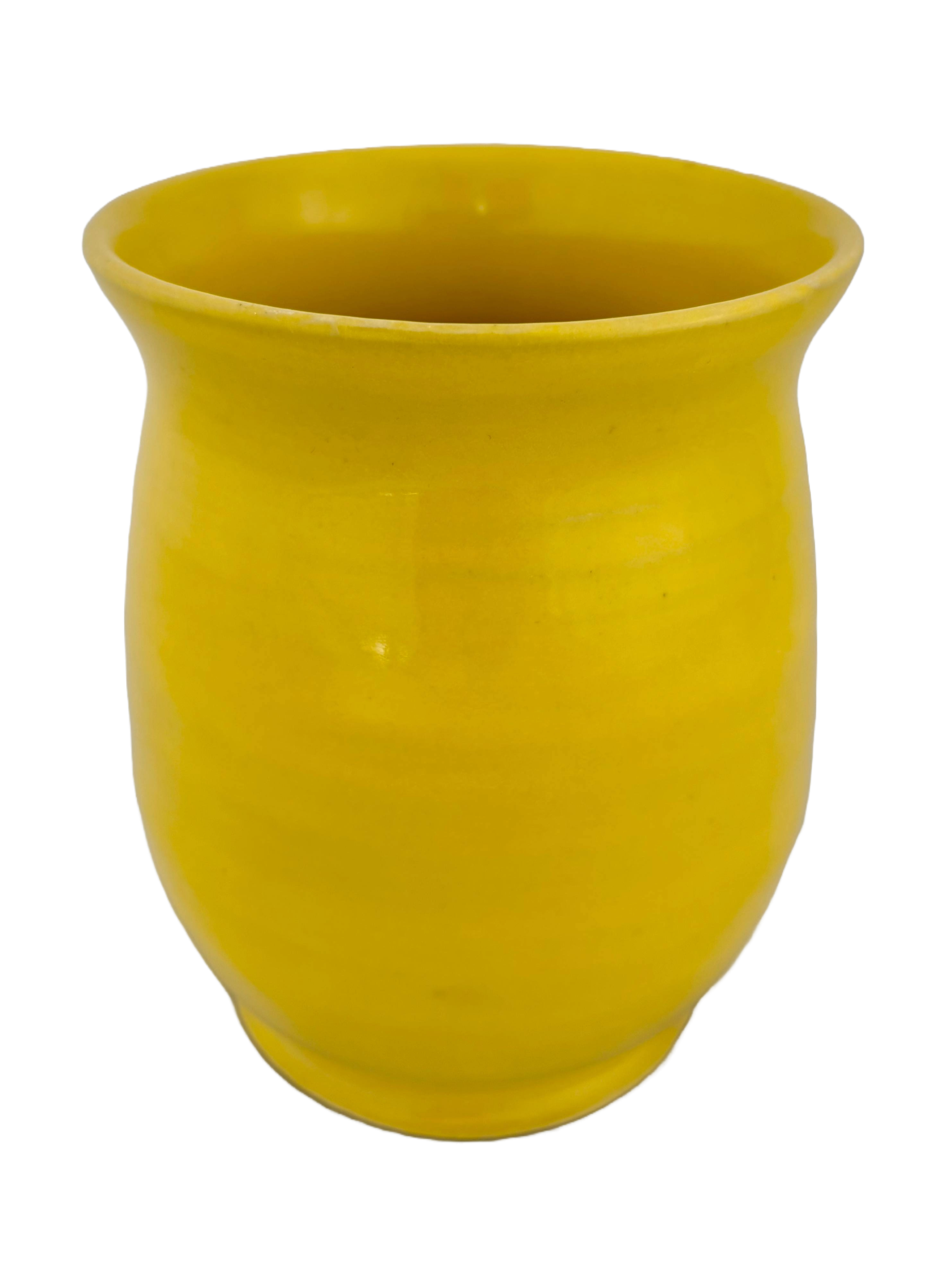 7-inch vase in bright sunshine yellow. Can be glazed in just about any colour.