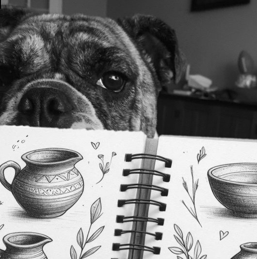 Mud Fired Magic is run by Sue Scheuer, based in Ottawa, Canada. As a small, home-based business, Sue focuses on the functionality of her pottery pieces, but also incorporates whimsy, funkiness and a mix of playful and bold colour. She is often accompanied in the studio by her #1 fan, Ruby Tuesday.